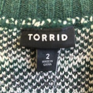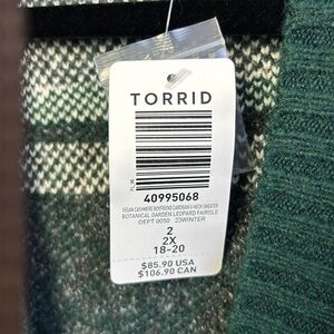 Torrid vegan cashmere boyfriend cardigan V-neck sweater. Botanical garden leopard fair aisle print. Size 2X. Shoulder to bottom measures approximately 35. Pit To pit measures approximately 28. NWT.