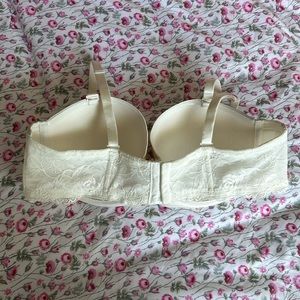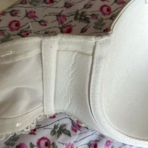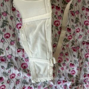 Torrid white bra with removable straps for strapless bra. Silicone edging to stop rolling and lace detail on the band.