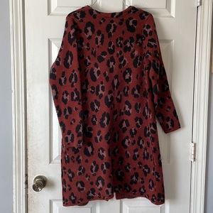 Torrid burnt orange rusty red leopard print brushed sweater coat open cardigan
