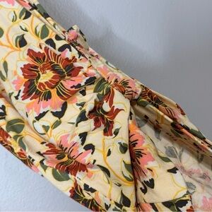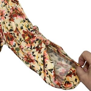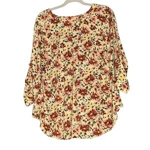 Torrid creme floral blouse. Floral pattern in rust, pink and gold. Sleeves are gathered and have a button to make 3/4 sleeve. Buttoned quarter v- neckline. Front breast pockets. Torrid Size 1(14-16) 1X.
