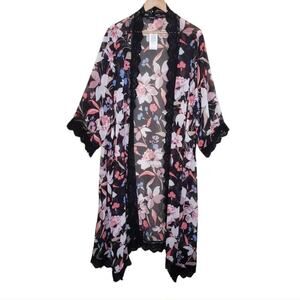 Torrid crocheted lace trimmed floral Chiffon kimono duster plus size 1X 2X