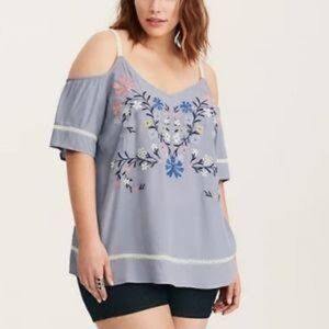 Torrid embroidered lace cold shoulder top