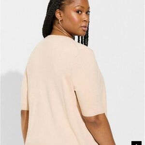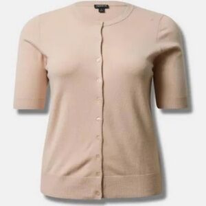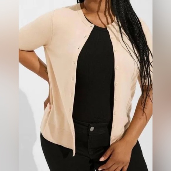 EUC Torrid everyday soft cardigan Crewneck Beige Shortsleeve Washed never worn Size 2 =18-20 W Measurements are taken laid flat not stretched out Chest 22 inches Bottom 22 inches Fabric 52% rayon 28% polyester 20% nylon