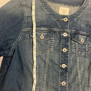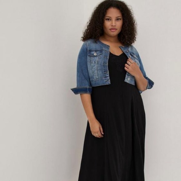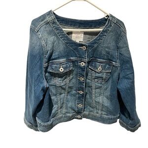 Torrid first at fit ladies collarless collar denim jacket SZ 3 button Jean.