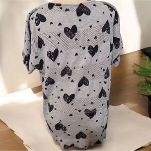 Torrid heart crochet knit sweater. This sweater is gray with black hearts and a V-neck cut.