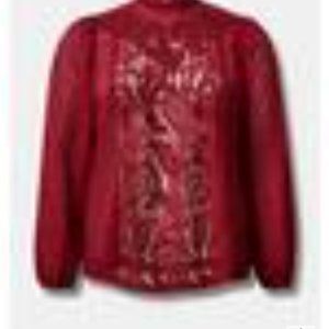 Beautiful Victorian style high neck blouse nice full sleeves beautiful pattern maroon brand new never worn did I mention it was torrid