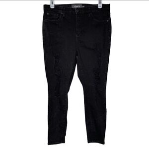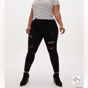 Torrid jeans black distressed Sky High Skinny Premium Stretch High Rise women’s plus size 16. Comfortable and flattering fit. Check my closet for more torrid & similar brands, bundle to save! 😊