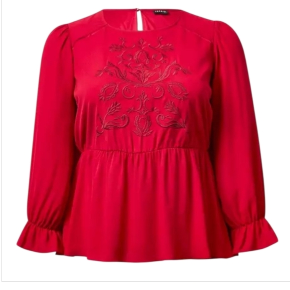 Torrid jester red embroidered georgette peplum long sleeve blouse 28
