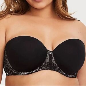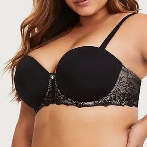 Torrid lace Balconette Lined Underwired Strapless Option Bra Black 46D