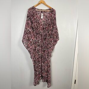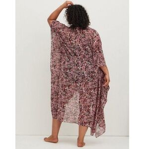 Torrid maxi burgundy leopard animal print sheer chiffon coverup kimono size 1/2