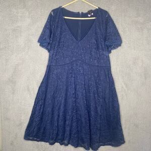 Torrid navy blue short sleeve lace vneck lined dress fancy a line girly 12