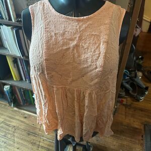 Torrid pale pink, gold pattern/accent, flowy, boho, sleevelessblouse. In good, used condition. Approximately 24 inches from armpit to armpit, 26 inches long.