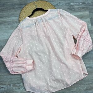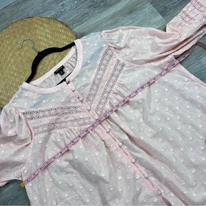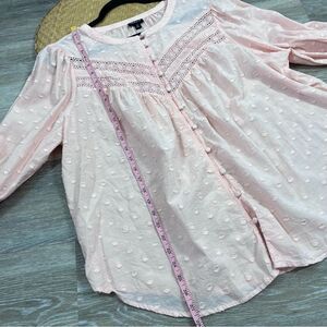 Torrid pink boho crochet laser cut button down blouse