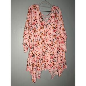 Torrid pink floral fairycore flowy hankerchief hem blouse size 6x. GUC. Tunic blouse flare sleeve fairy whimsical girly pretty cute romantic plus size