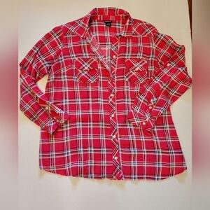 Torrid plaid 100% rayon top in pre owned excellent condition. Sixe 2XL