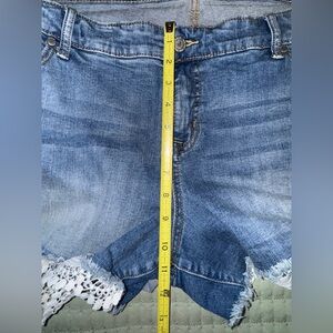 Torrid plus size distressed Jean Shorts with White Lace Trim. Size 22. GUC