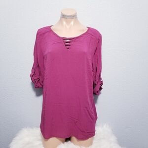 Torrid plus size glam office casual plum 3/4 sleeve shirt top blouse 1
