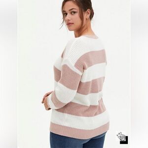 Torrid pullover drop shoulder striped pink & white cotton blend sweater sz L