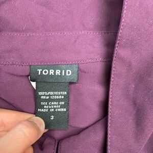 Women’s torrid button down tee shirt Capri sleeves purple slight imperfections. EJ4-6