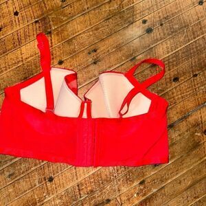 Torrid bustier, red, lacy, pinup girl, sexy bra. In good, used condition. From a pet and smoke free house.