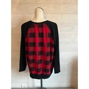 Torrid red & black buffalo plaid sweatshirt. Long sleeves are solid black & raglan set. Black ribbed crewneck & hem. Cotton/polyester blend. Approximate measurements pit to pit 24", shoulder to hem 24", size 2 (2X). Excellent preloved condition. Please see Torrid size chart in photos.