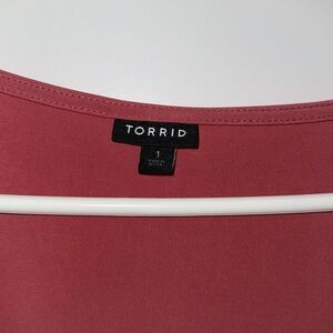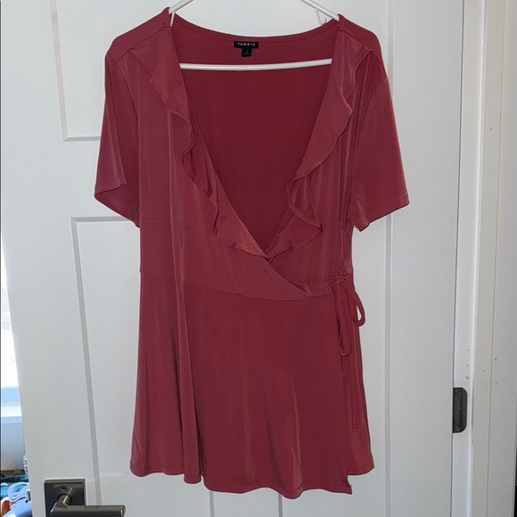 Torrid red-pink wrap top with ruffle details. Perfect for any occasion. Size: 1 Condition: Great