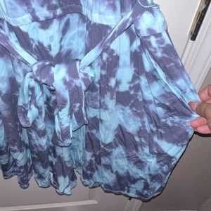 Super soft tie dye romper with pockets!! The colors are a light blue when darker purple the dye. NWT
