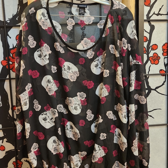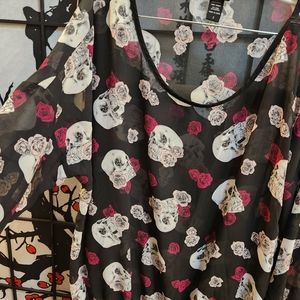 torrid, size 2, sheer black floral skulls pullover. Fits larger than a 2, but I think that's the style