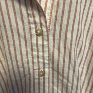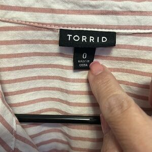 Pre-loved white and pink striped button down, elastic in the back, size 0, from torrid
