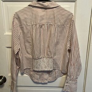Pre-loved white and pink striped button down, elastic in the back, size 0, from torrid