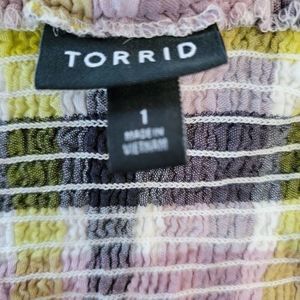 Torrid short sleeve Blouse off shoulder fitted top with flare stretchy plus sz 1