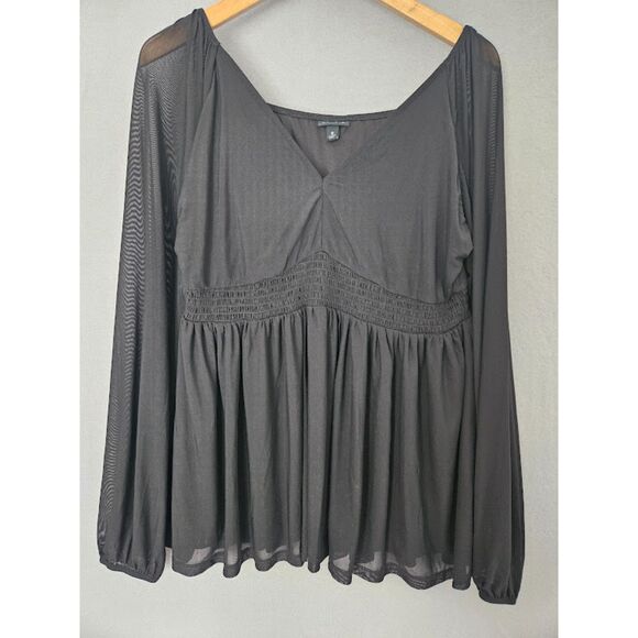 Torrid size 0 blouse, black, long sheer sleeves, elastic cuffs, lined bodice, v-neck, elastic empire waist.