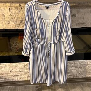Drawstring waistline pockets on each side of waist, 3/4 sleeves with button and strap with option to fold up