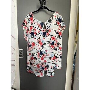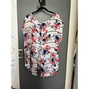 Torrid size 1 dress up floral striped open back shirt blouse. Very good used condition, missing one button on the back at the bottom, Not that noticeable at all just makes the back more open. Please feel free to look at my other listings for bundles!