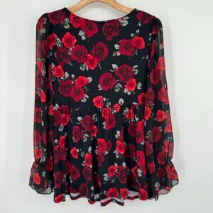 Torrid size 1X plus Black red Floral Surplice Babydoll Top Sheer Sleeves new
