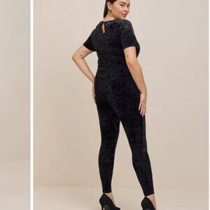 Torrid size 2X Black Full Length Crushed Velvet Short Sleeve Catsuit Evening