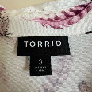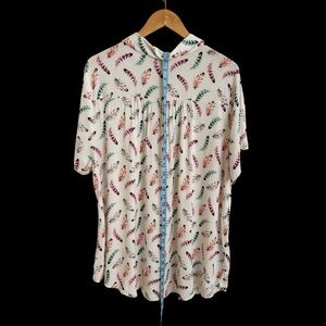 Torrid size 3 3X Feather Print Button Up Challis Blouse Top Short Sleeve