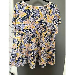 Torrid size 3 3x floral yellows purple peach short sleeve top t shirt. Excellent used condition. Flowing fit. Please feel free to look at my other listings for bundles!
