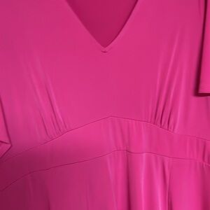 This vibrant pink sundress from Torrid features a flattering v-neckline and charming flutter sleeves, perfect for casual or work settings. Its midi length and flowy design offer a comfortable fit, making it an ideal choice for warm weather days.