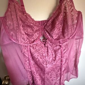 This is a really pretty mouth colored toward the bodysuit… Has really pretty cut out in the back, snap crotch, and wires. Size 4. Only wore once for a boudoir photo shoot.