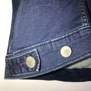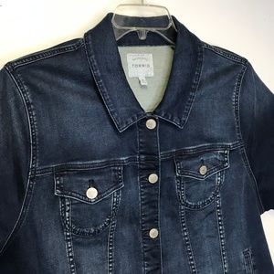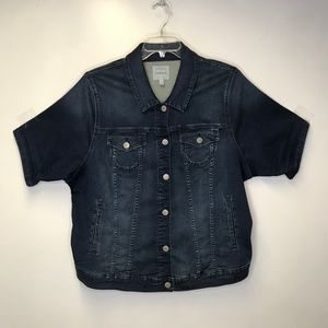 Torrid women's size 4 short sleeve medium wash denim button up denim jacket. 2 inner pocket. 4 outer pockets. 98% cotton/2% Spandex. Approximate measurements: underarm to underarm 26.5: shoulder to hem 23"; flat waist @ hem 26".
