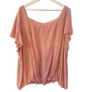 Torrid size 5 =5XL pink shirt sleeve laced gathered bottom