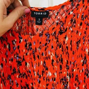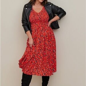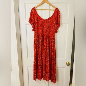 Torrid size XXL plus size Red Smocked flutter Sleeve Midi Cottage Animal Print