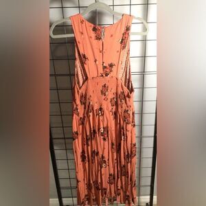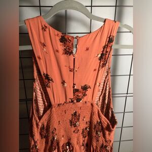 Beautiful Torrid sleeveless plus size dress. Racerback style with a high neckline and buttons on the back. Smocked at the top and elasticized waist. Orange color with multicolor flower pattern throughout. Measures about 20” p2p without stretching out the smocking. Excellent used condition.