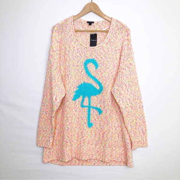Torrid speckled multicolored flamingo, graphic, print, pull over sweater.