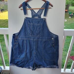 The Torrid size 18 denim short overalls, also known as shortalls, are designed for women's plus sizing. Made from a comfortable cotton blend denim fabric with a light wash, these solid blue overalls feature a high rise waist and a regular fit. The button closure adds a stylish touch, making them perfect for casual occasions. With a 5-inch inseam, these shortalls are a trendy and versatile addition to any women's wardrobe.