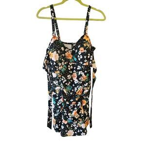 Torrid sz 2 black floral swimdress wireless built in bra sz 2X SW89