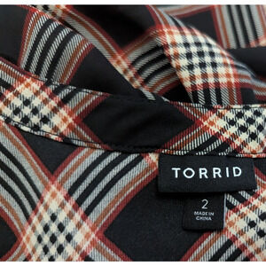 Torrid sz 2 or 2X Tunic Blouse multi color plaid print ss top 3364