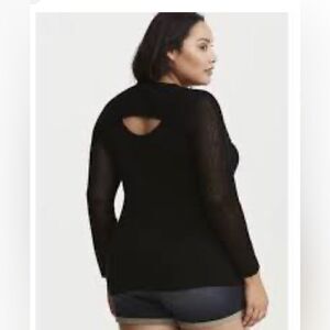 Torrid sz 4 fishnet active cutout slit front/back black sweater mesh/open stitch