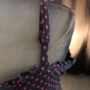 Torrid size 4 Twist Tees pin-up style ruched bust tank top. Black with Red polka dots, adjustable shoulder straps. Gently used.